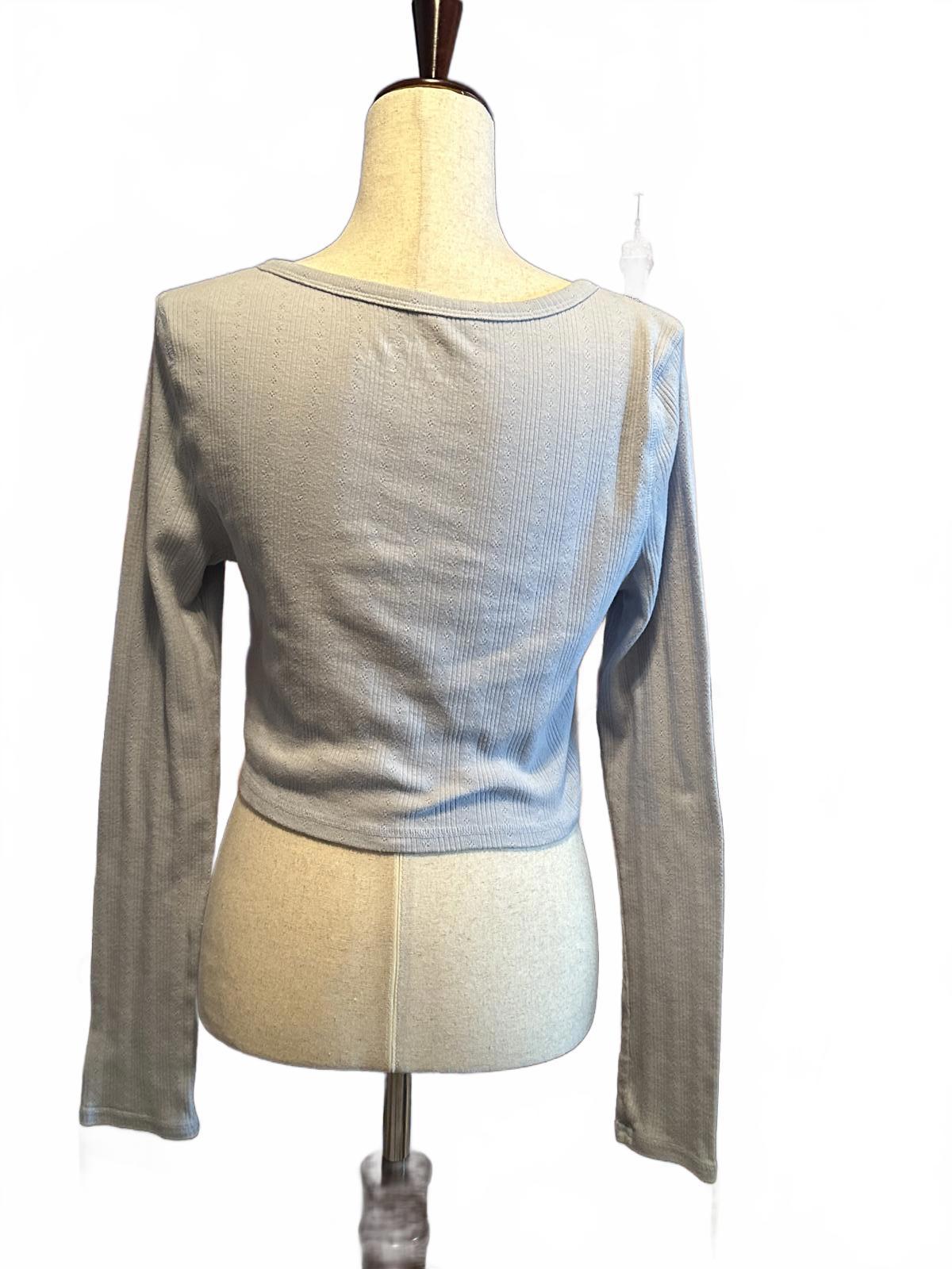 Light blue ribbed long sleeve top from the Shrunken Tee Collection.