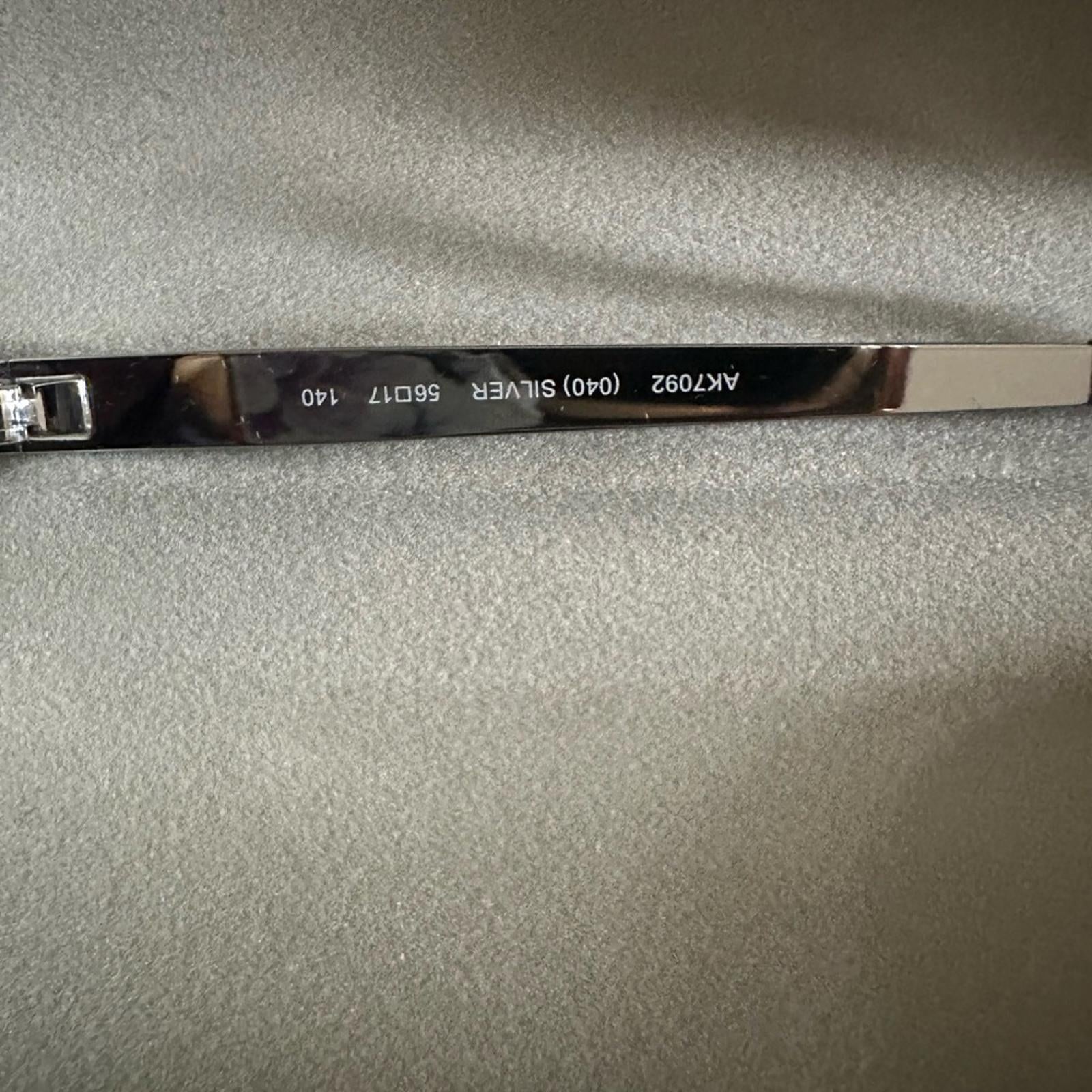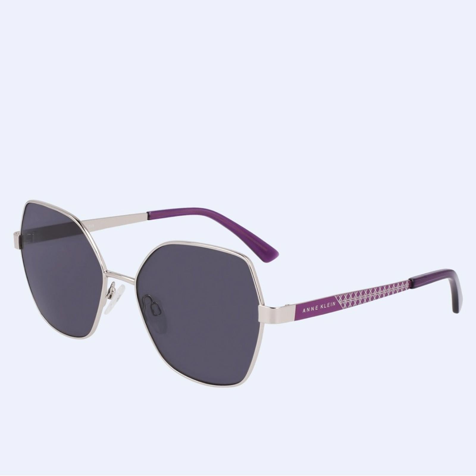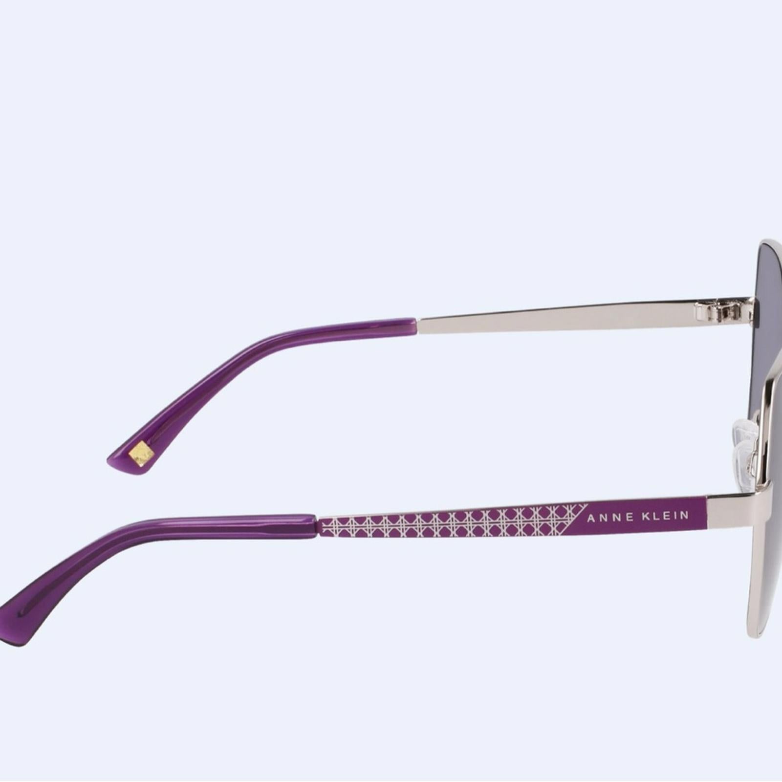 Purple temples with subtle pattern detailing and Anne Klein branding.