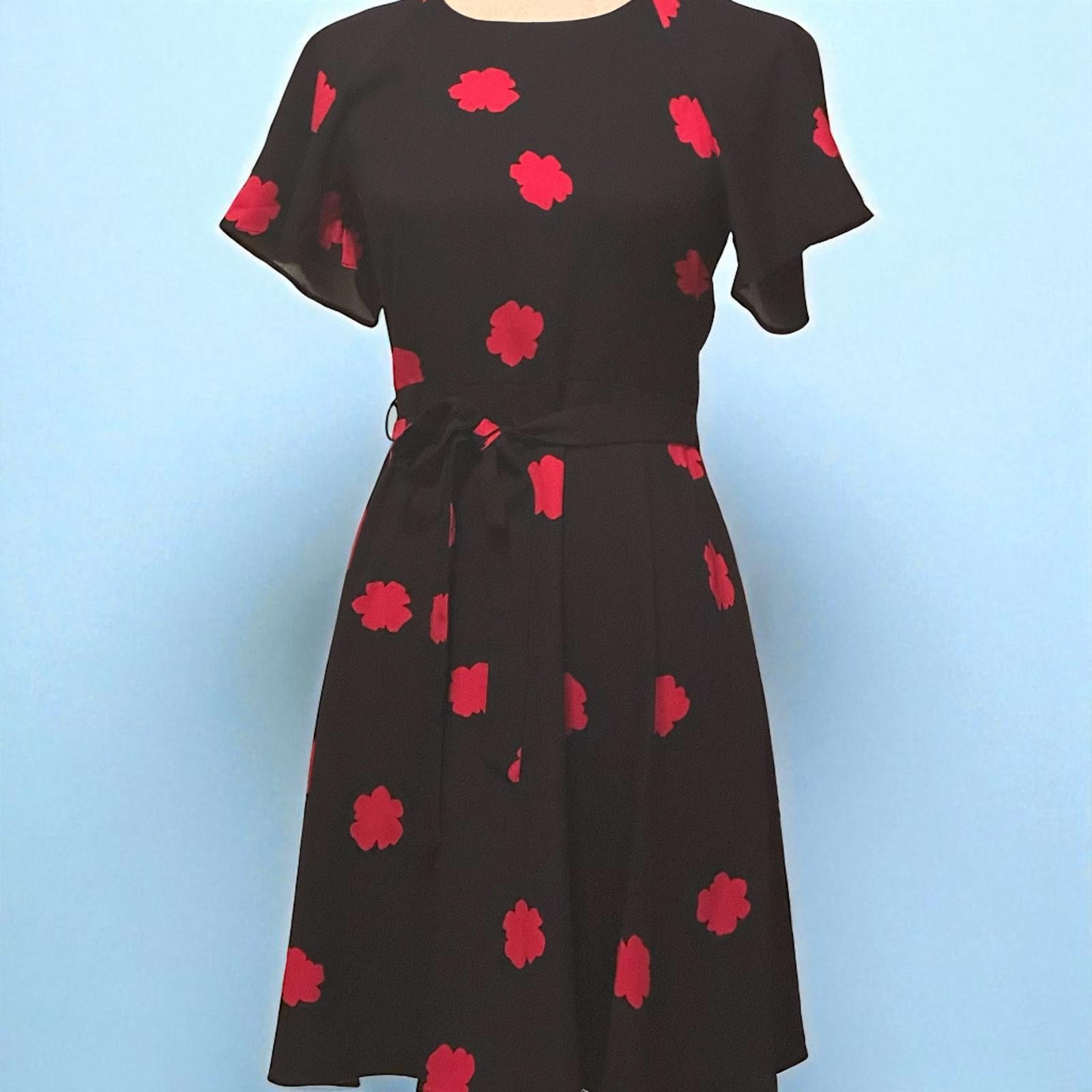 Banana Republic Black Dress with Red Floral Print, Size 0
