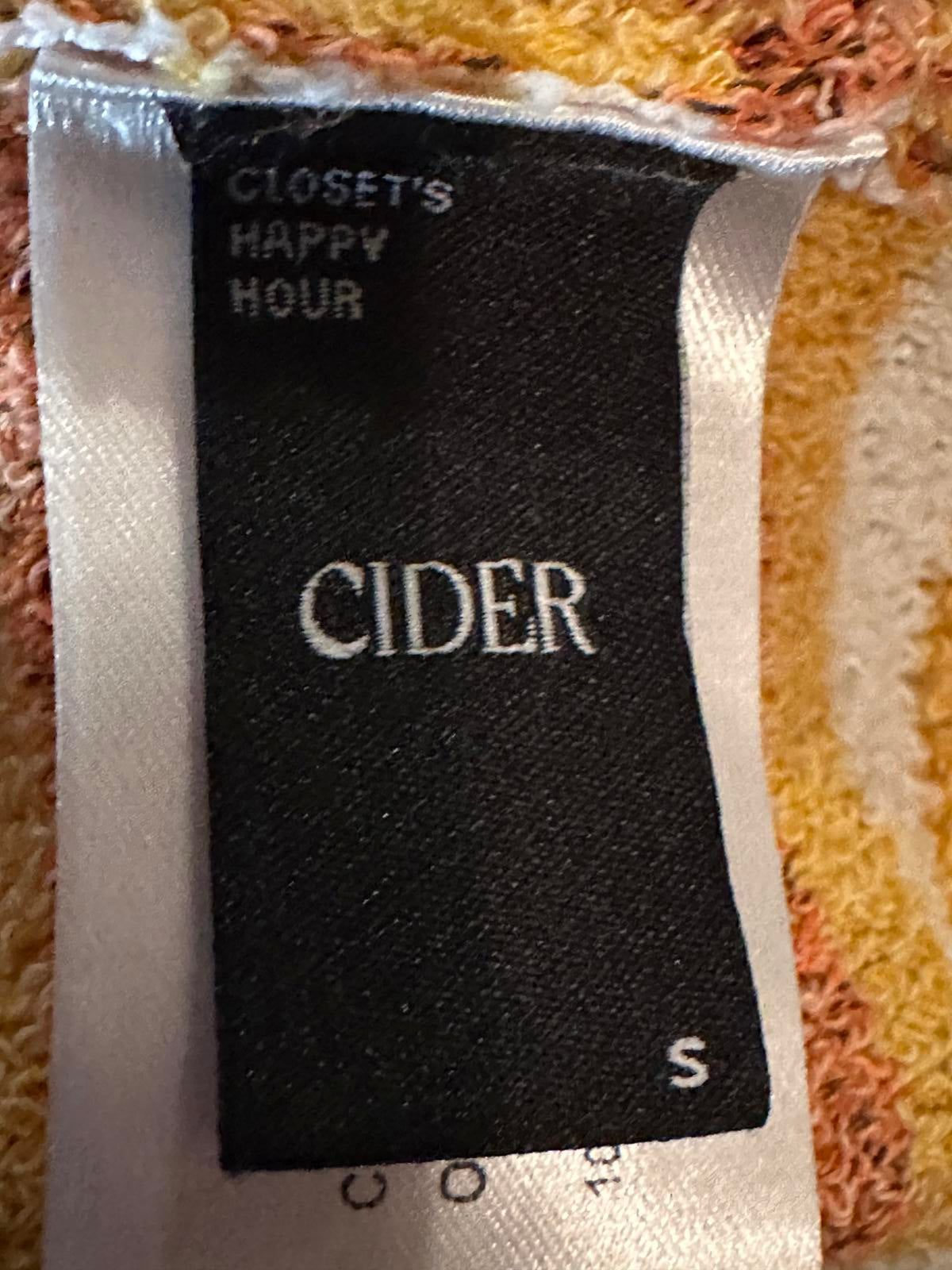 Stylish sleeveless knit top by Cider, featuring a vibrant striped pattern in warm and cool tones.