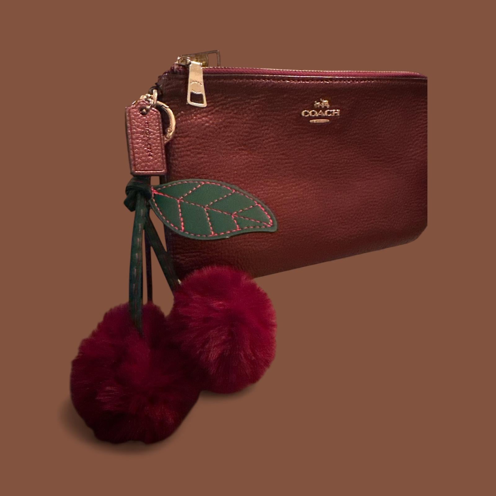 Coach Women's Leather Wristlet Clutch with Pom Pom Charm
