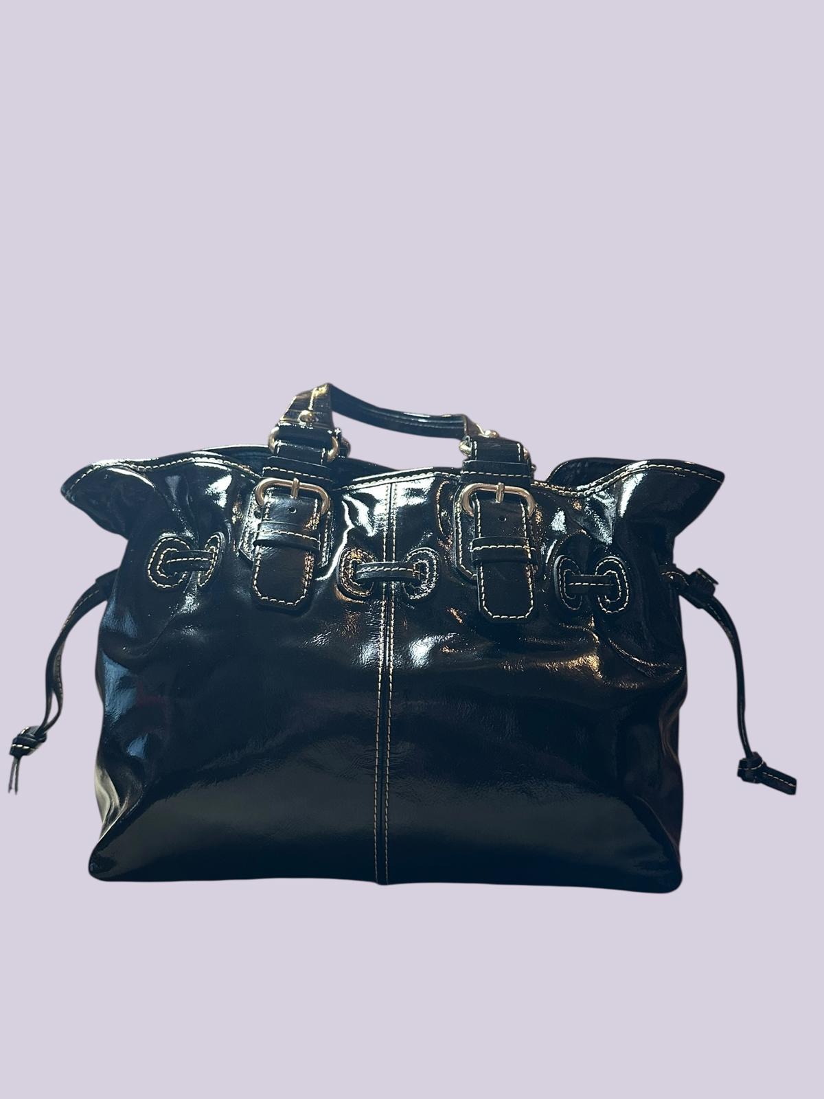 The patent finish gives it a sleek, polished look perfect for work, evening, or elevated casual wear. Classic early-mid 2010s Dooney style with timeless appeal.