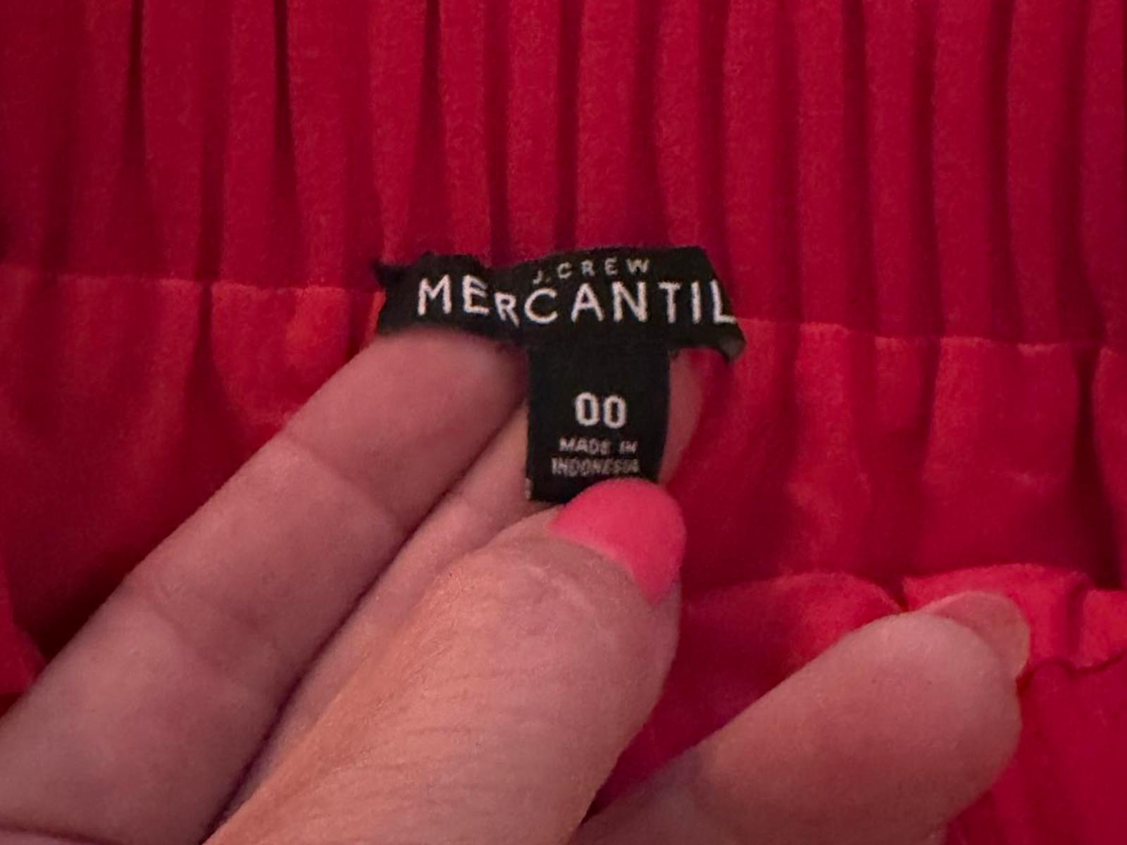 Stylish red skirt featuring an elastic waistband for a comfortable fit. The skirt is lined for comfort.