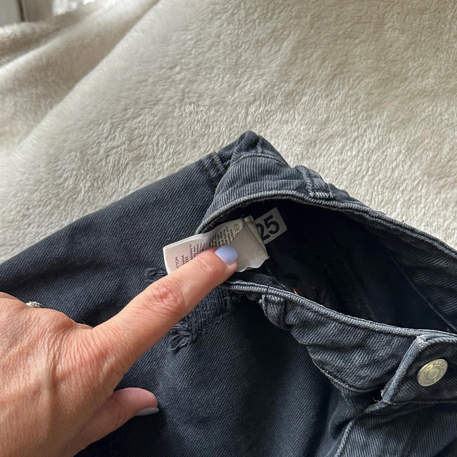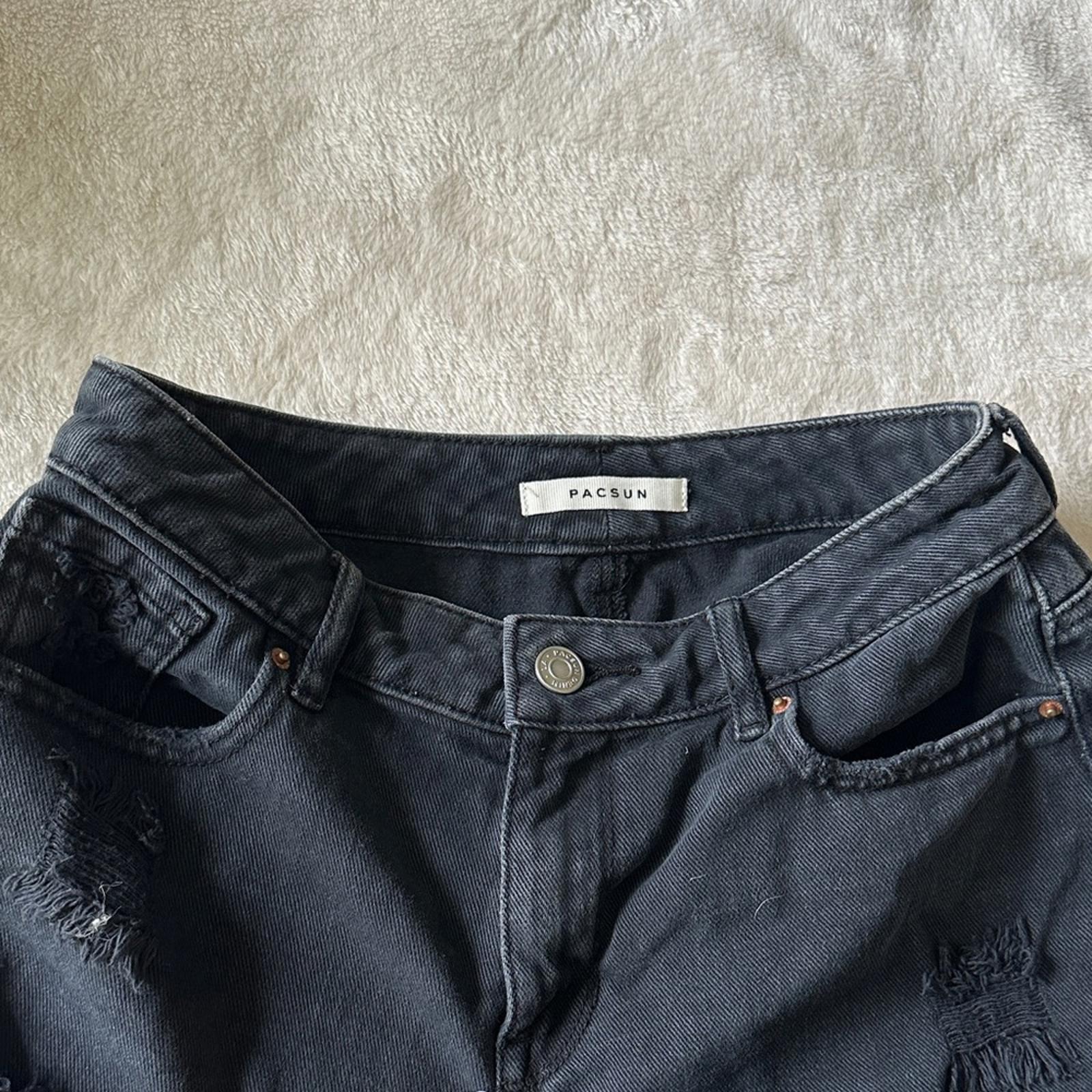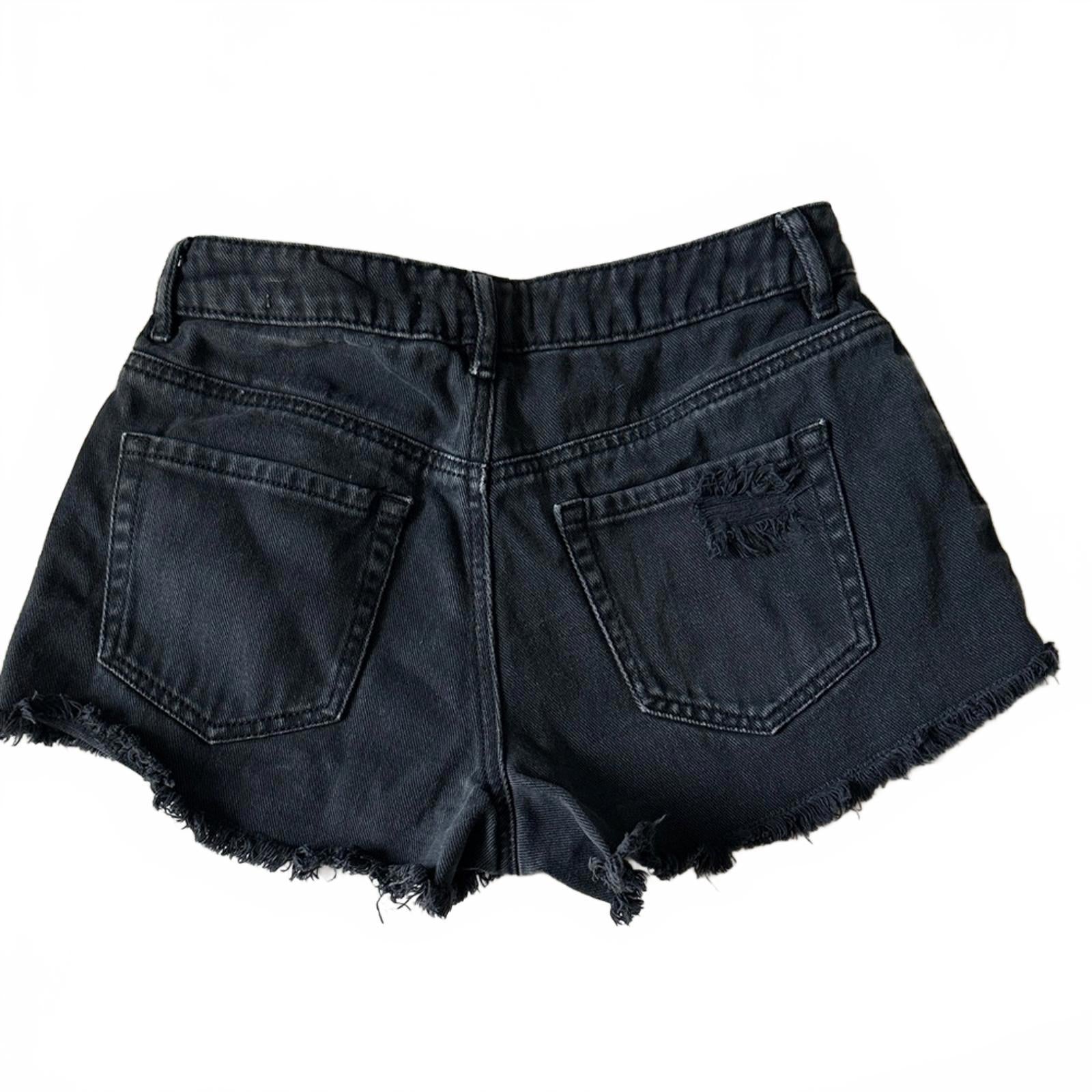 Features a classic five-pocket design with frayed hems and subtle distressing for a trendy look.