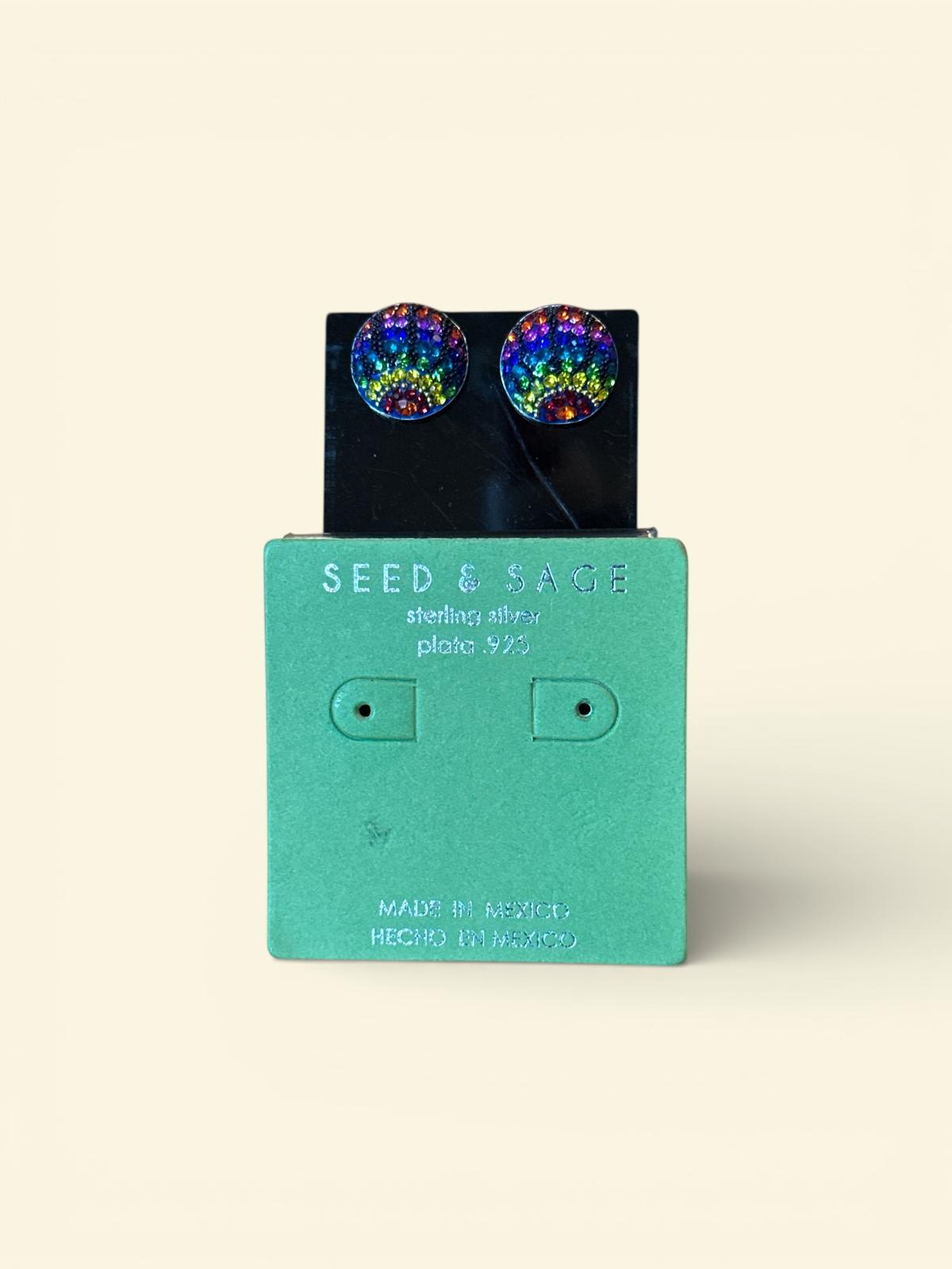 Elegant stud earrings featuring a vibrant rainbow crystal design.