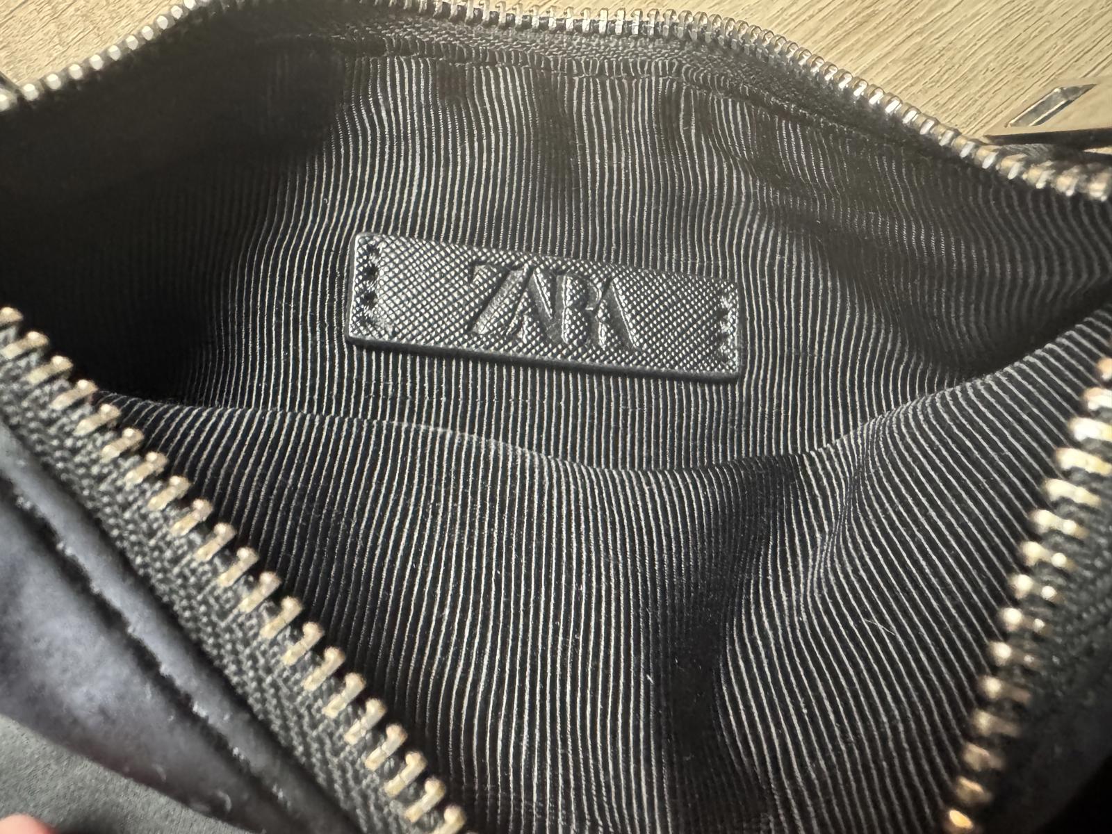 Zara super cute shoulder bag. Features a smooth satiny exterior with a sturdy zipper closure and a comfortable shoulder strap. Interior lined with striped fabric and branded VMV label. Perfect for evening outings or casual use, combining style and functionality.